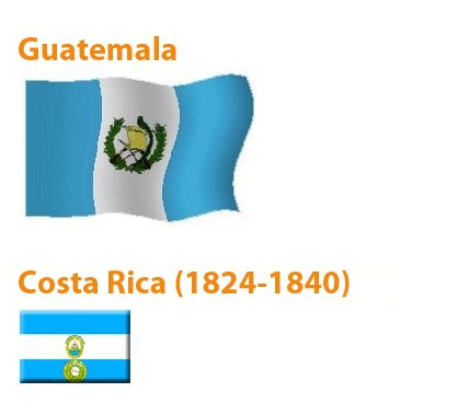 Drapeau Argentin et les variantes qui a part celle du Costa Rica sont toutes encore aujourd'hui en vigeur ! Tous ces drapeaux sont les temoins de l'action concrète d 'Aury en Amerique centrale au nom des "Republiques de Buenos-Aires et du Chili".